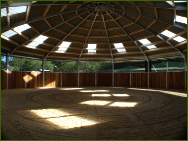 Die Longierhalle wird regelmäßig abgezogen und bei Bedarf beregnet.