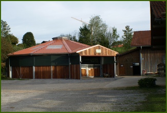 Auch abends ist die Longierhalle durch die Beleuchtung benutzbar.